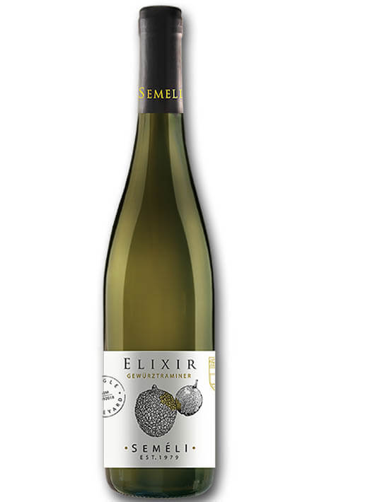 A dry white wine from the Gewurztraminer variety, with the name Elixir by Semeli Estate.